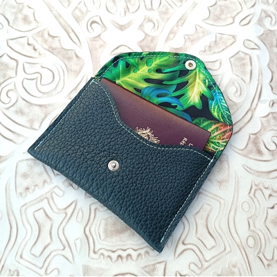Pochette pour papiers en cuir vert cypres idée cadeau femme fabriqué en France