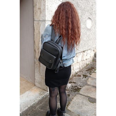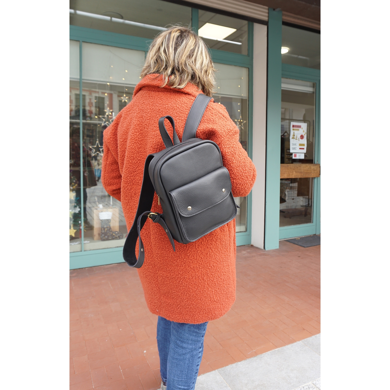 Sac à dos artisanal en cuir grainé noir idée cadeau made in Haute Savoie
