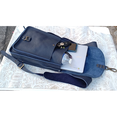 Sac à dos artisanal en cuir grainé bleu idée cadeau fabriqué en France