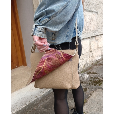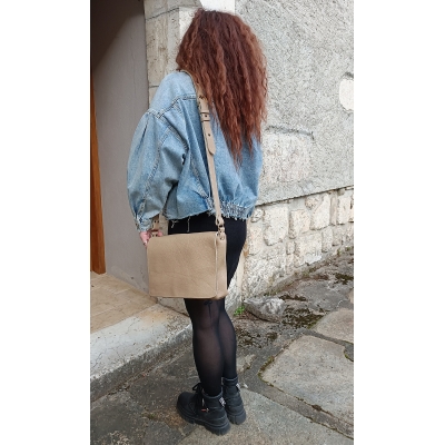 Sac bandoulière en cuir grainé beige pièce unique made in France