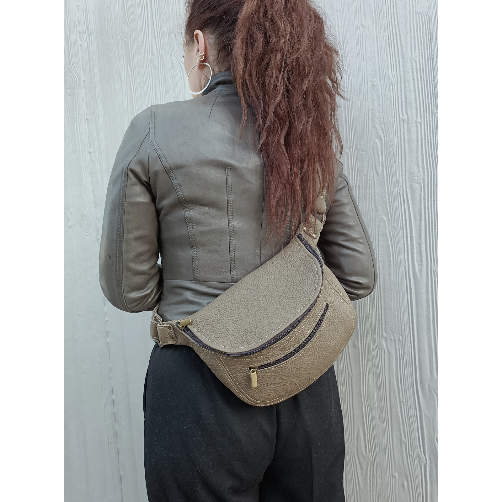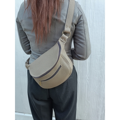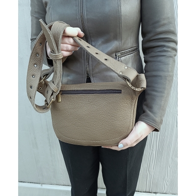 Réalisée en cuir souple de taurillon grainé de couleur loutre.