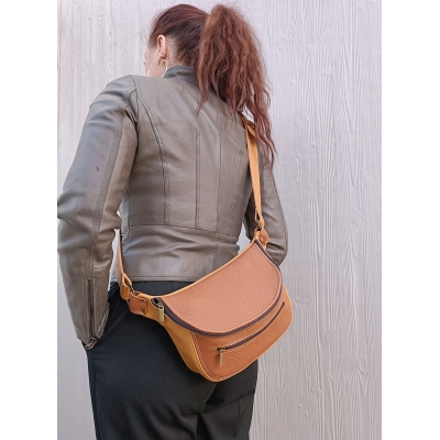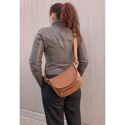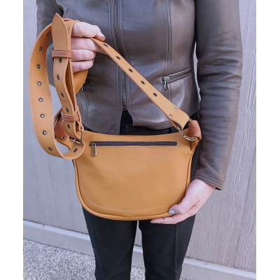 15 cm) en plus de la poche principale, bouclerie couleur bronze.