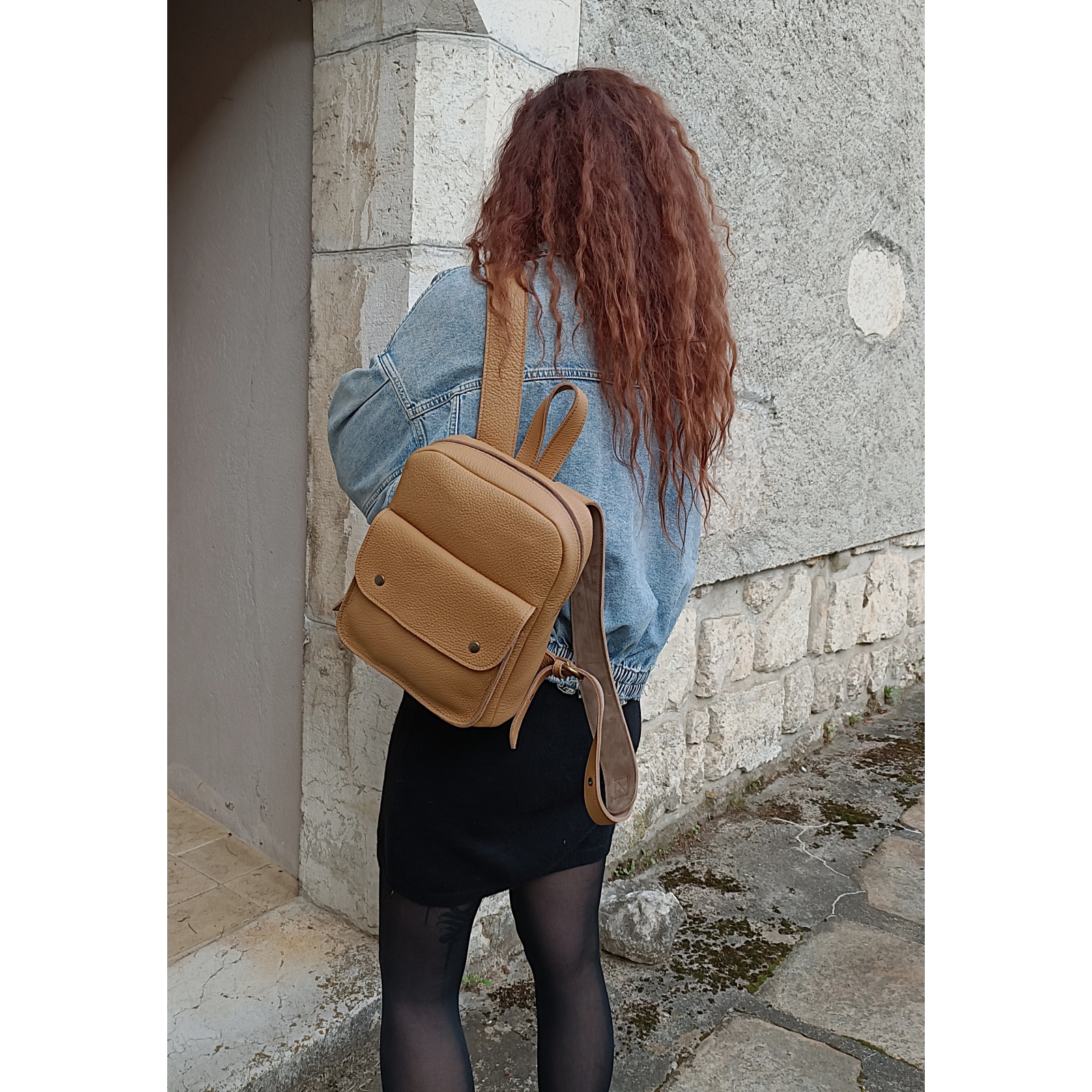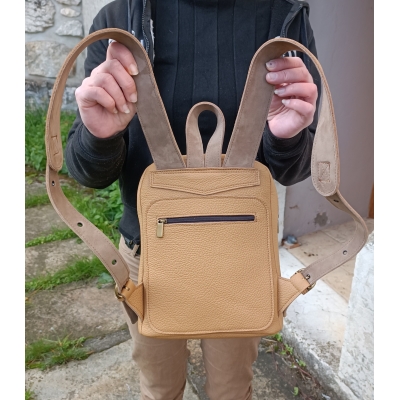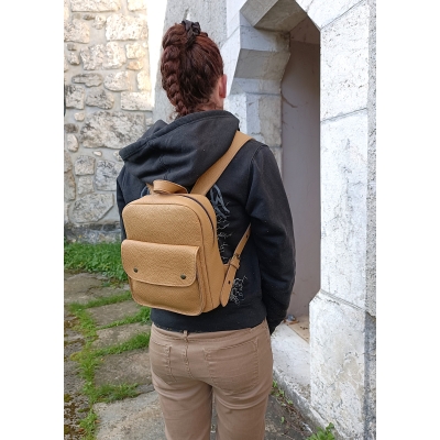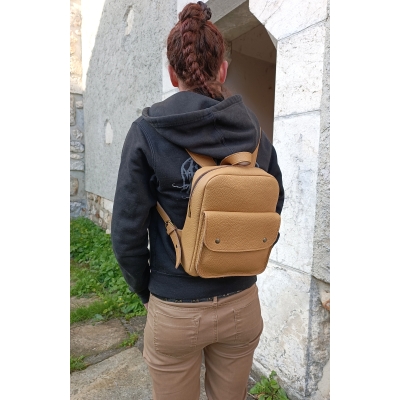 Sac à dos artisanal en cuir grainé camel idée cadeau fabriqué en France