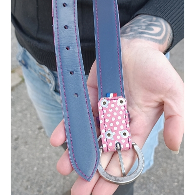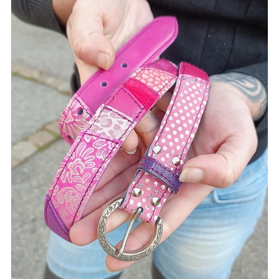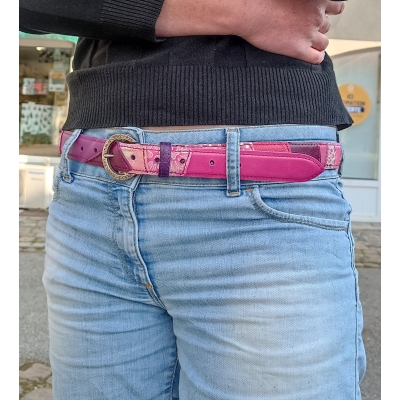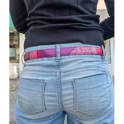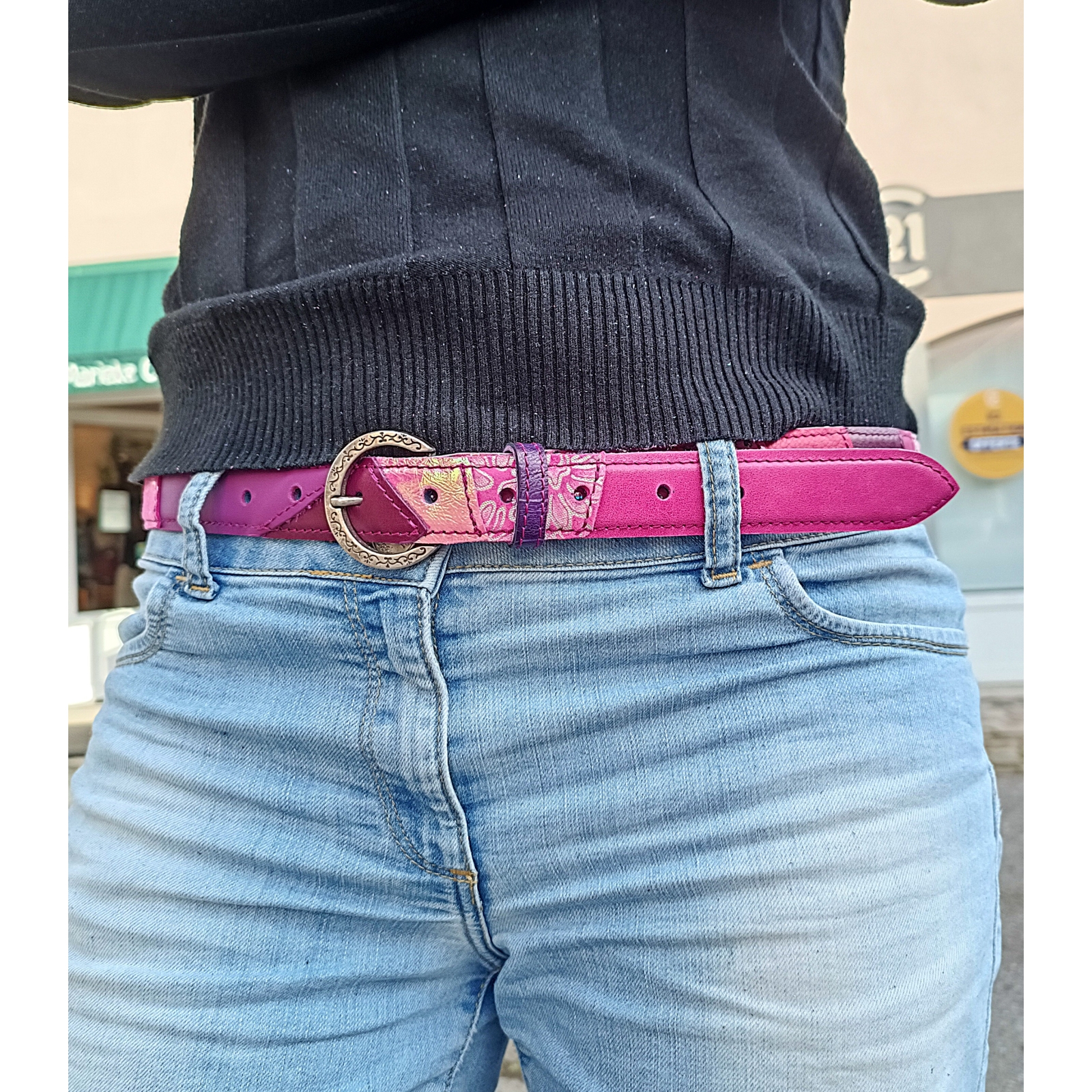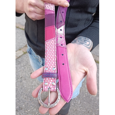 Ceinture 112 cm en cuir patchwork de cuirs rose, fuchsia et violet taille L idée cadeau artisanale