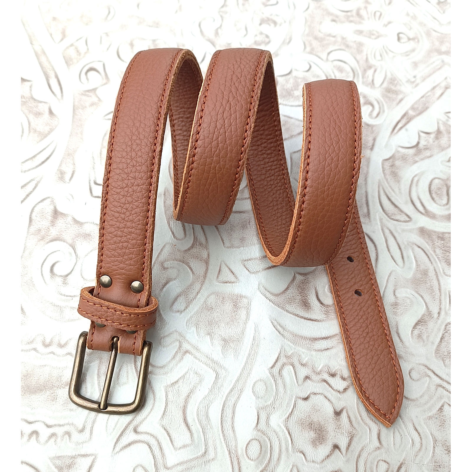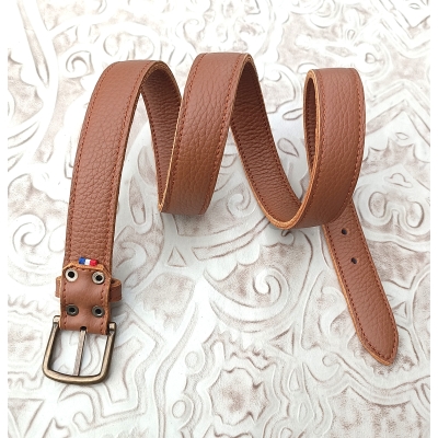 Ceinture 108 cm en cuir grainé camel taille M/L idée cadeau artisanal fabriqué en France
