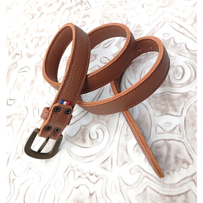 Ceinture 110 cm en cuir grainé camel taille L idée cadeau artisanale fabriquée en France
