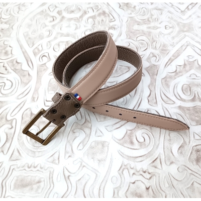 Ceinture 99 cm en cuir grainé loutre taille S/M idée cadeau artisanal fabriqué en France