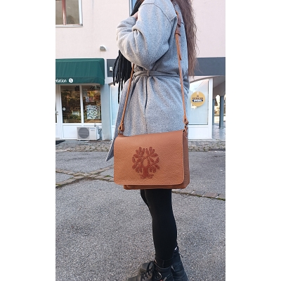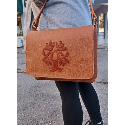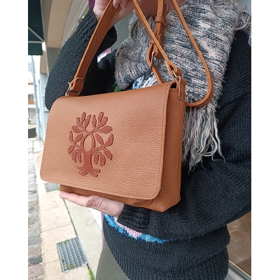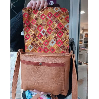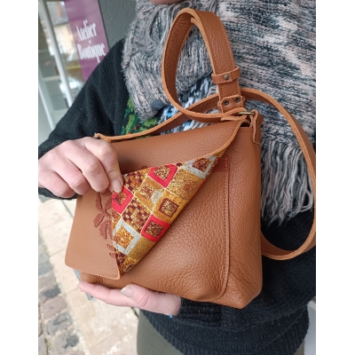 Sac bandoulière en cuir souple marron avec chêne pièce unique made in France