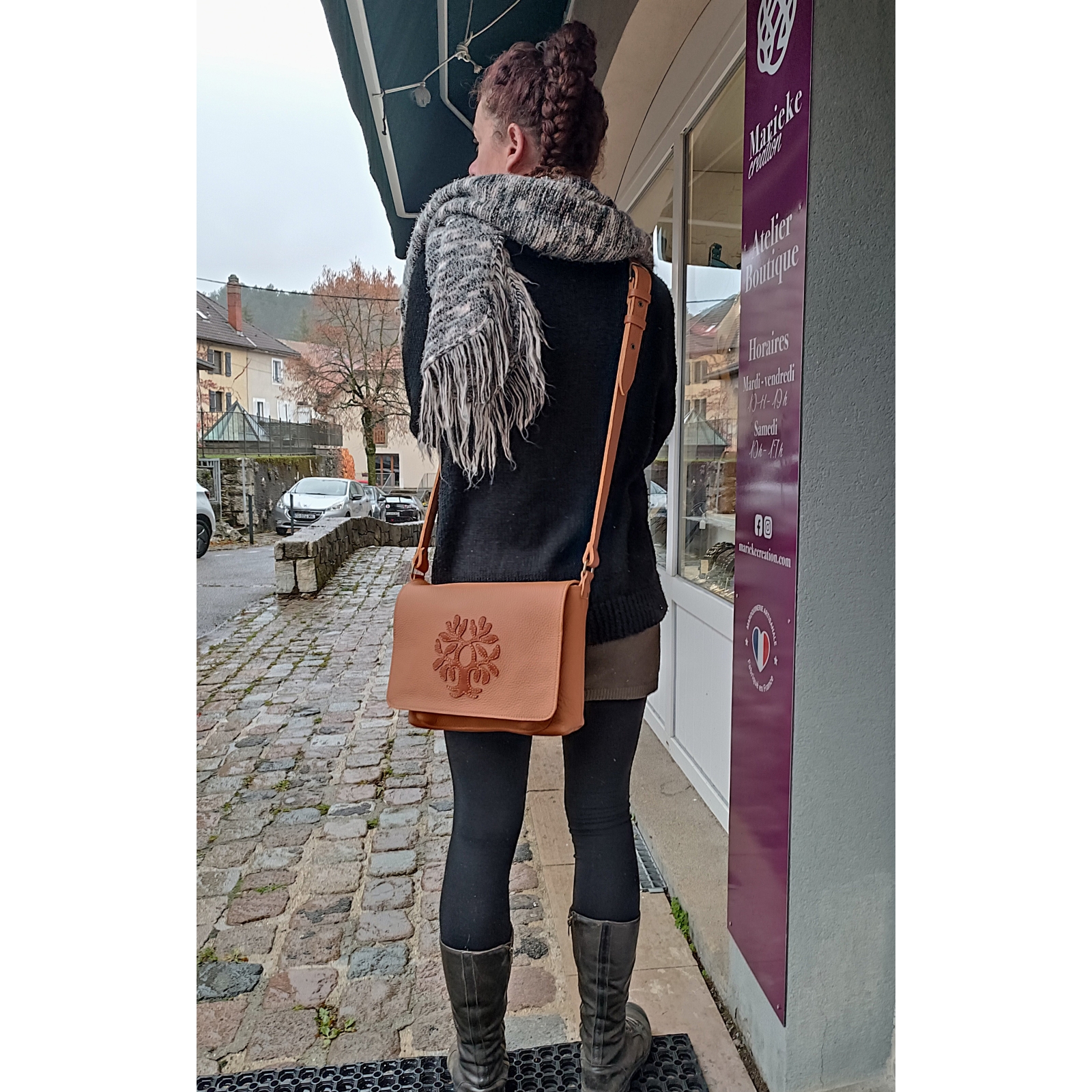 Tous les produits en cuir sont imaginés et réalisés à l'atelier boutique MARIEKE CREATION à Cruseilles, Haute-Savoie.