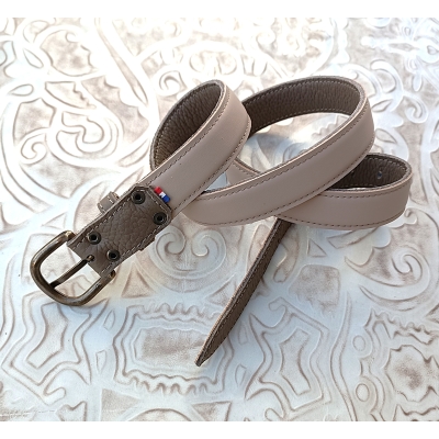 Doublure cuir pour plus de confort et de solidité, boucle métal couleur bronze, cette ceinture mesure 111 cm de