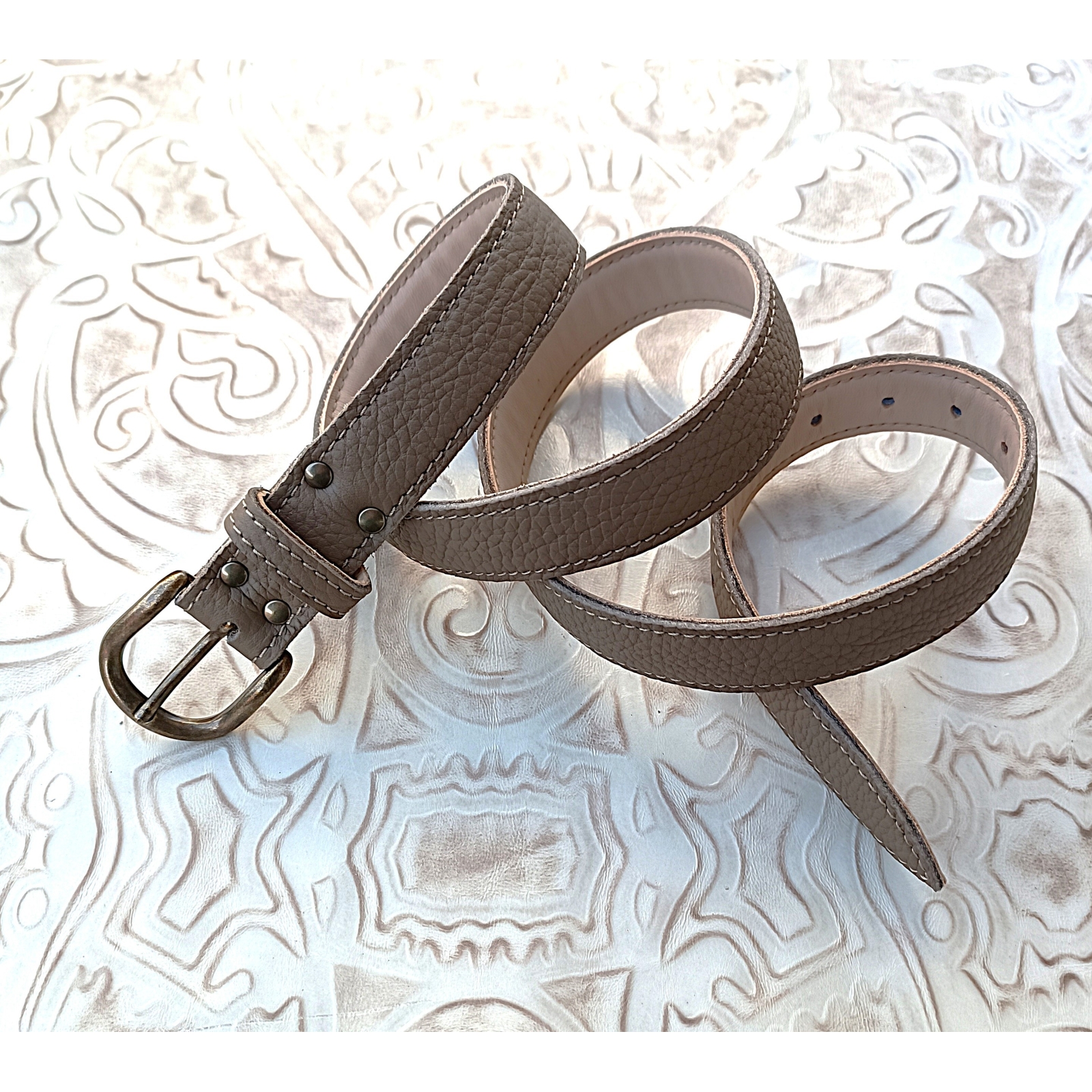 Ceinture 111 cm en cuir grainé loutre taille L idée cadeau artisanale