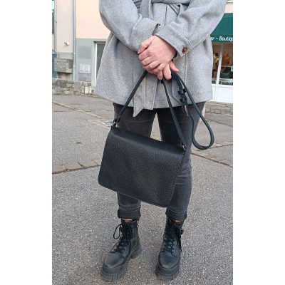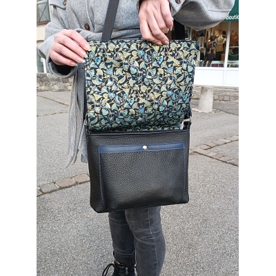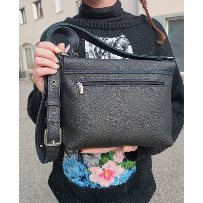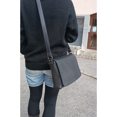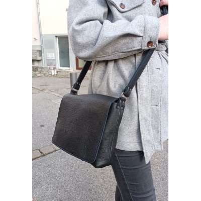Sac bandoulière MARIEKE CREATION en cuir souple noir pièce unique made in France