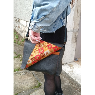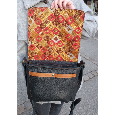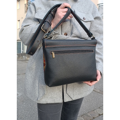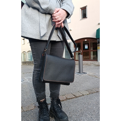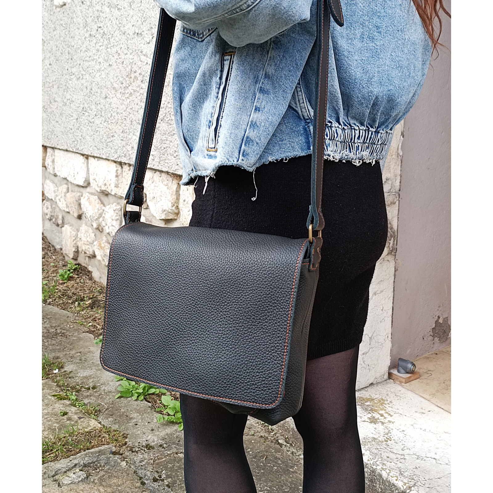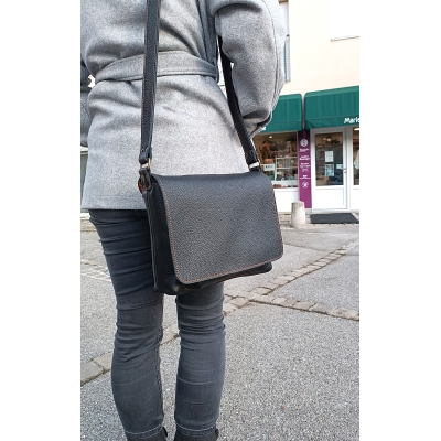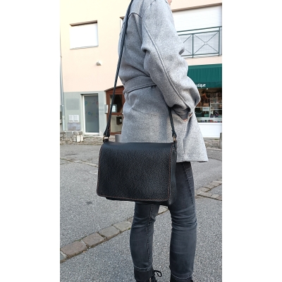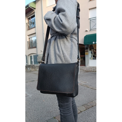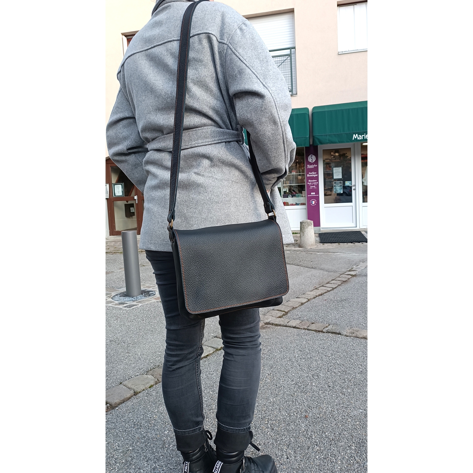 Sac bandoulière en cuir souple grainé noir MARIEKE CREATION idée cadeau fabriqué en Haute Savoie