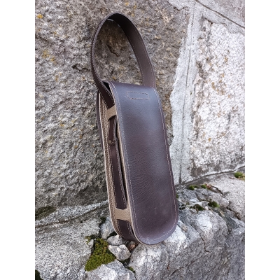 Sacoche artisanale pour 3 boules de pétanque en cuir marron et loutre Made in France