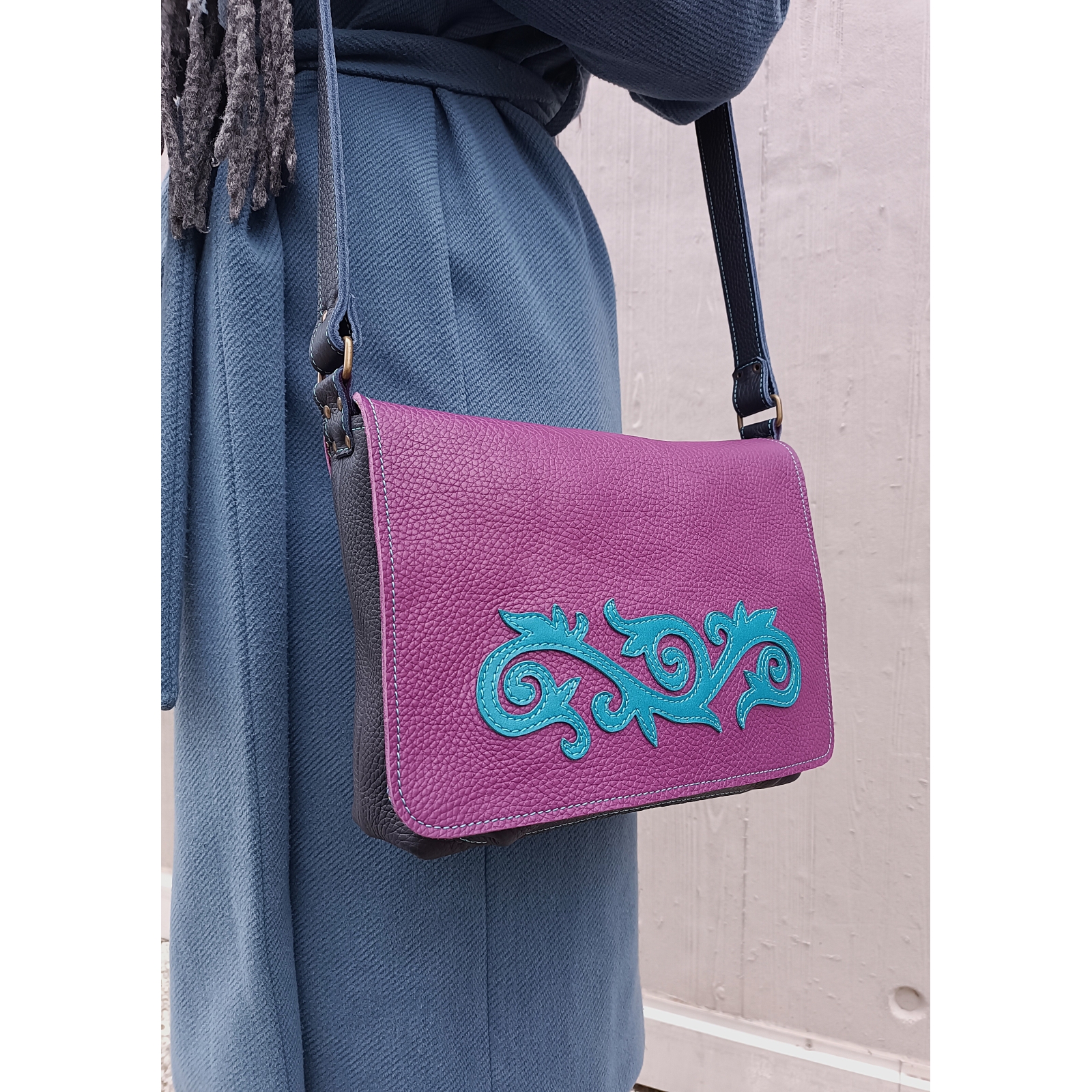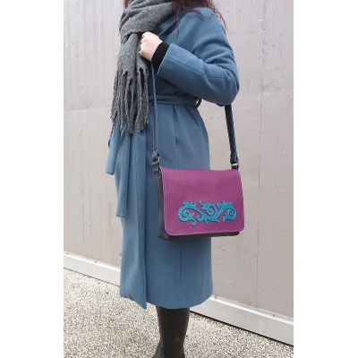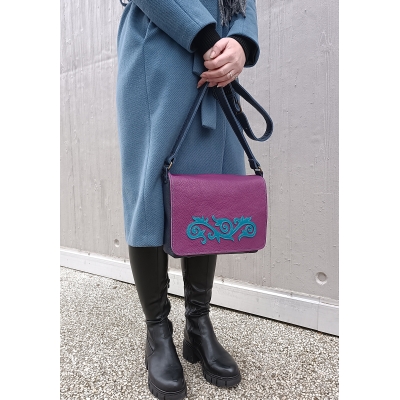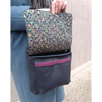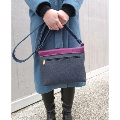 Sac bandoulière en cuir souple fuchsia et bleu pièce unique made in France