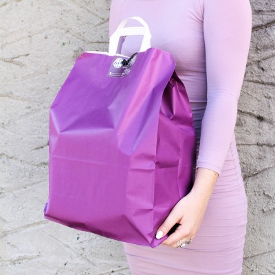 - une poche extérieure à l'avant, mesurant 18 X 20 cm, qui ouvre et ferme avec un bouton pression, et qui est ornée