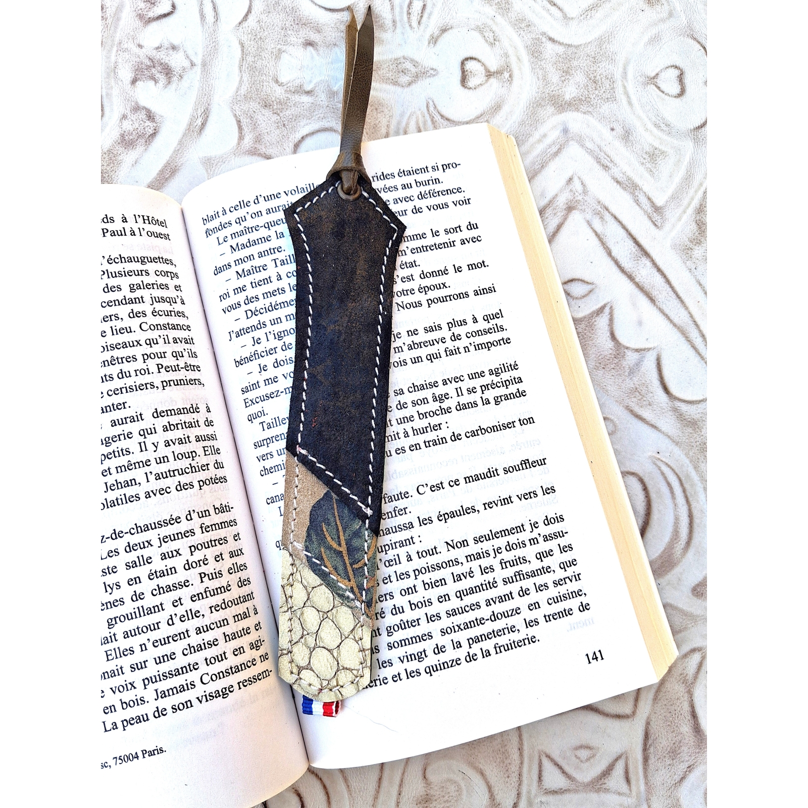 Marque page artisanal réalisé en cuirs souples de veau, mouton et chèvre de différentes couleurs et textures