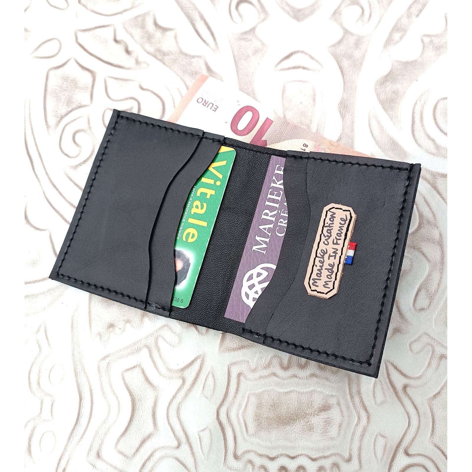 Porte carte en cuir souple noir idée cadeau artisanal made in France