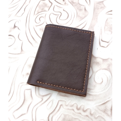 Porte carte artisanal en cuir lisse marron fabriqué en Haute Savoie