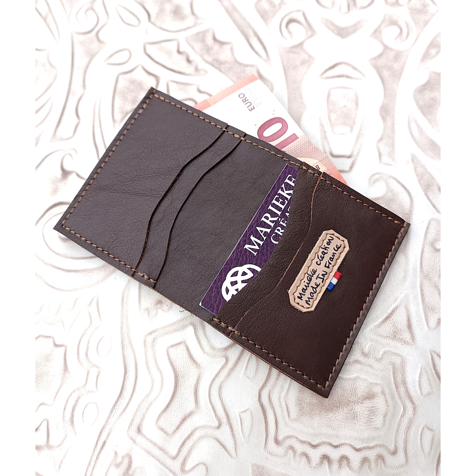 Tous les produits en cuir sont imaginés et réalisés à l'atelier boutique MARIEKE CREATION, maroquinerie artisanale à