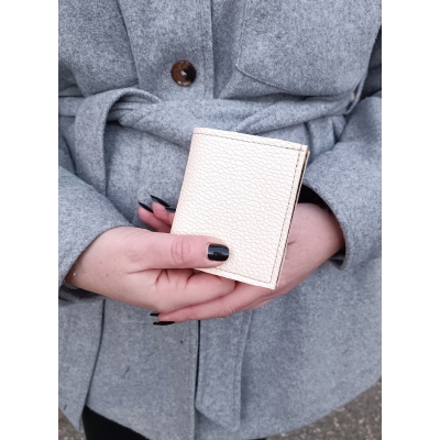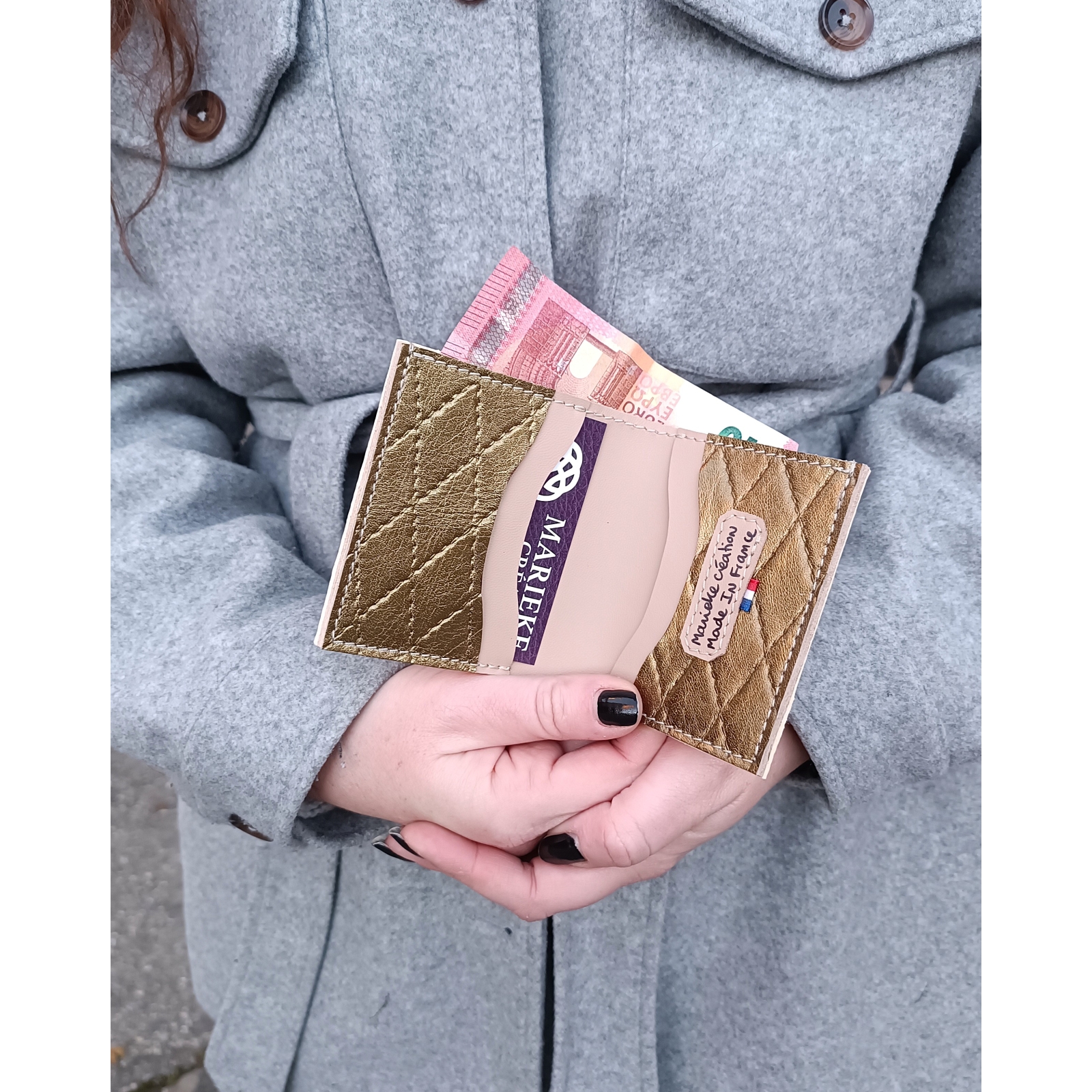 Porte carte artisanal en cuir beige et or idée cadeau made in France