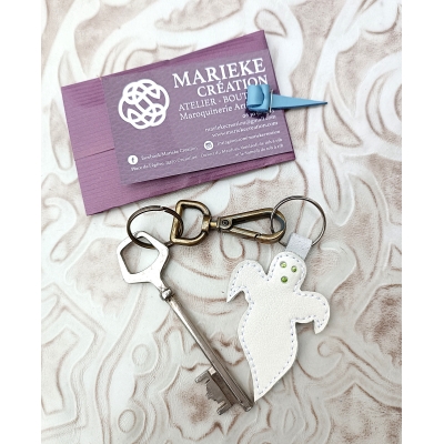 Porte clé fantôme en cuir idée cadeau pour halloween fabriquée en France