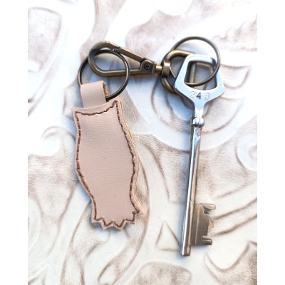 Porte clé artisanal chouette pyrogravé en cuir marron fabriqué en France