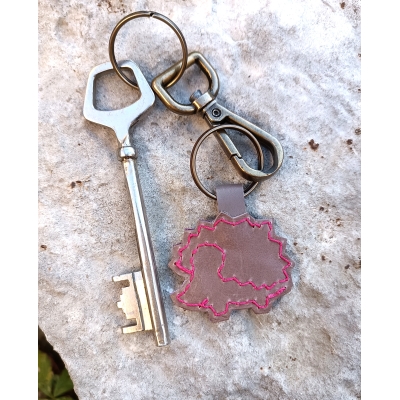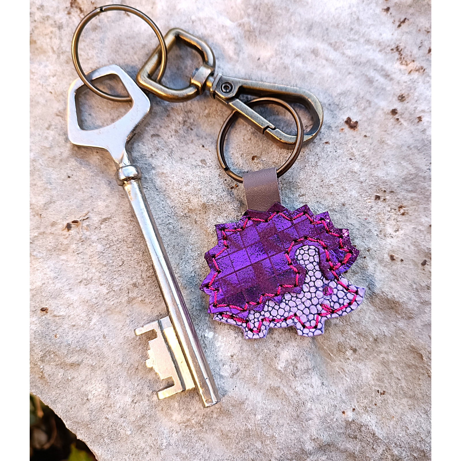 Porte clef bijou de sac en cuir violet et fuchsia motif hérisson idée cadeau artisanal fait en France