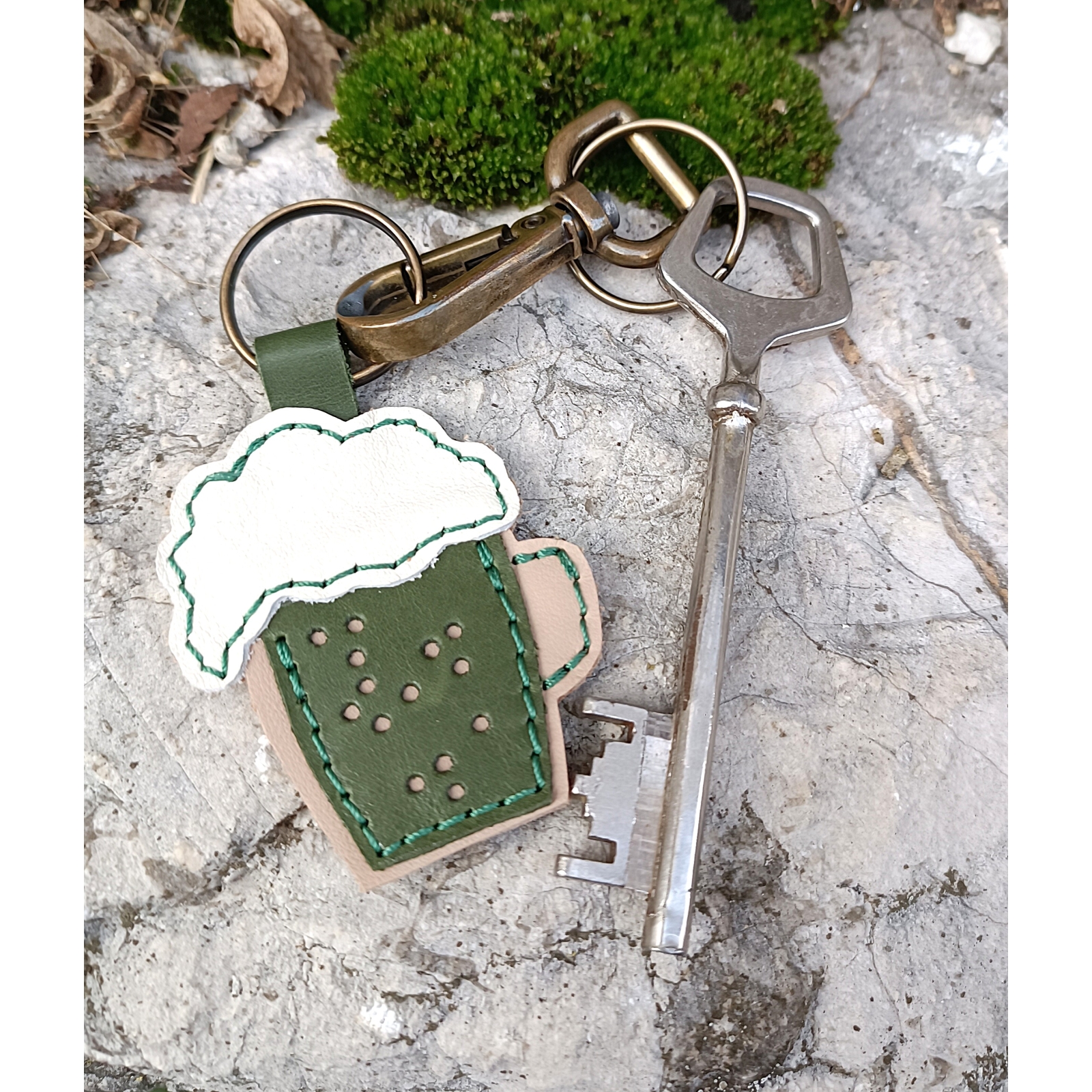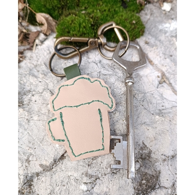 Porte clé cuir chope de bière au genepi idée cadeau artisanal