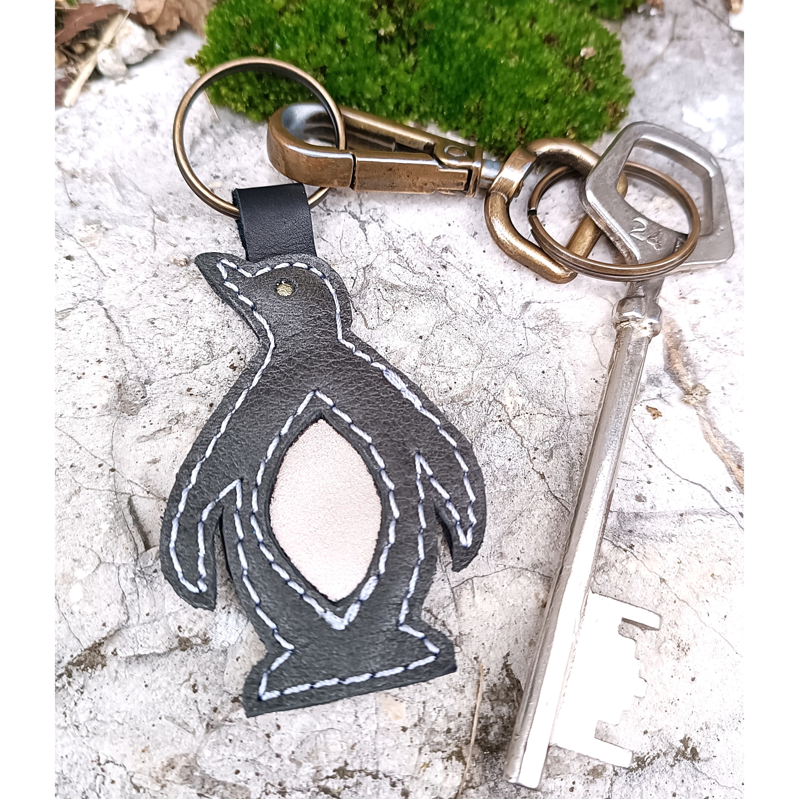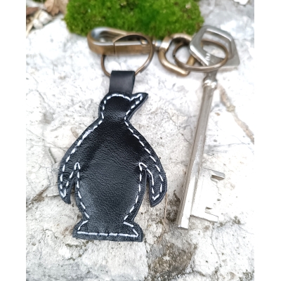 Porte clé en cuir motif pingouin idée cadeau made in Cruseilles France