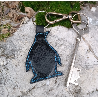 Porte clé en cuir motif pingouin idée cadeau made in Cruseilles France