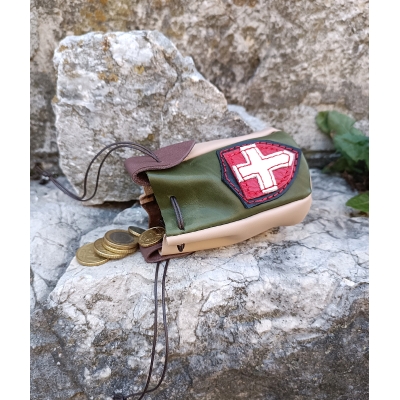 Bourse en cuir souple, idée cadeau artisanal motif croix savoyarde made in France.