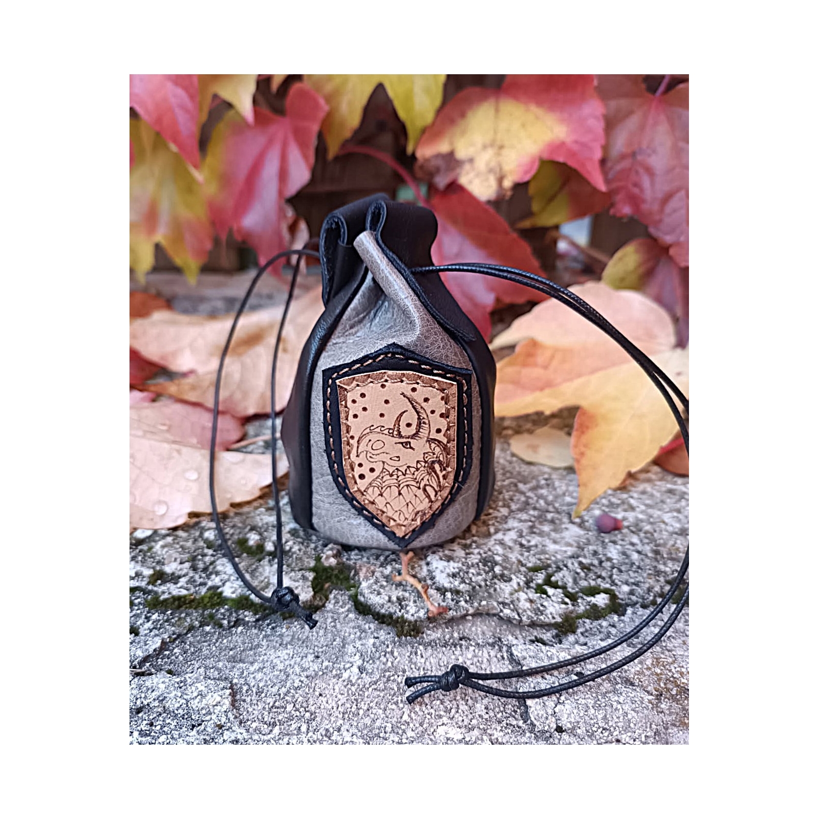 Pour ranger vos pierres, vos pièces, vos dés, gris-gris.... ou vos bijoux, s' ouvre et se ferme à l'aide d' un cordon.