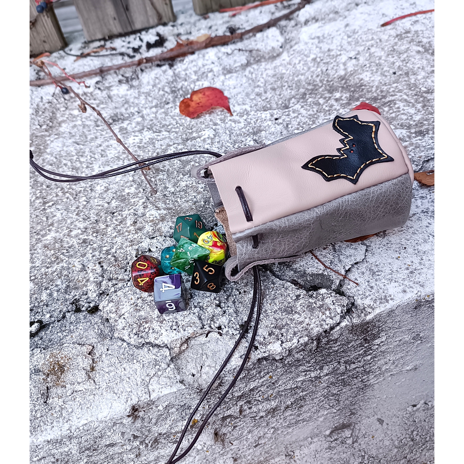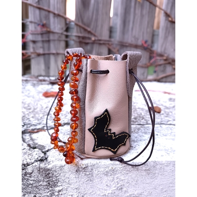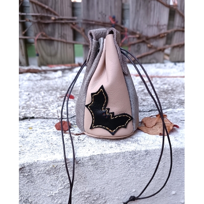 Bourse en cuir beige et gris idée cadeau chauve souris fait en France