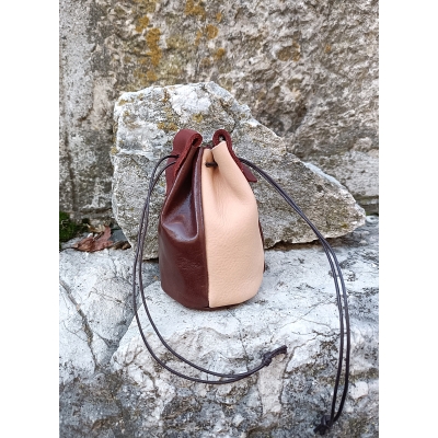 Cette bourse mesure 9,5 cm de haut et le fond, découpé en rond, mesure 6.5 cm de diamètre, elle est réalisée en cuirs