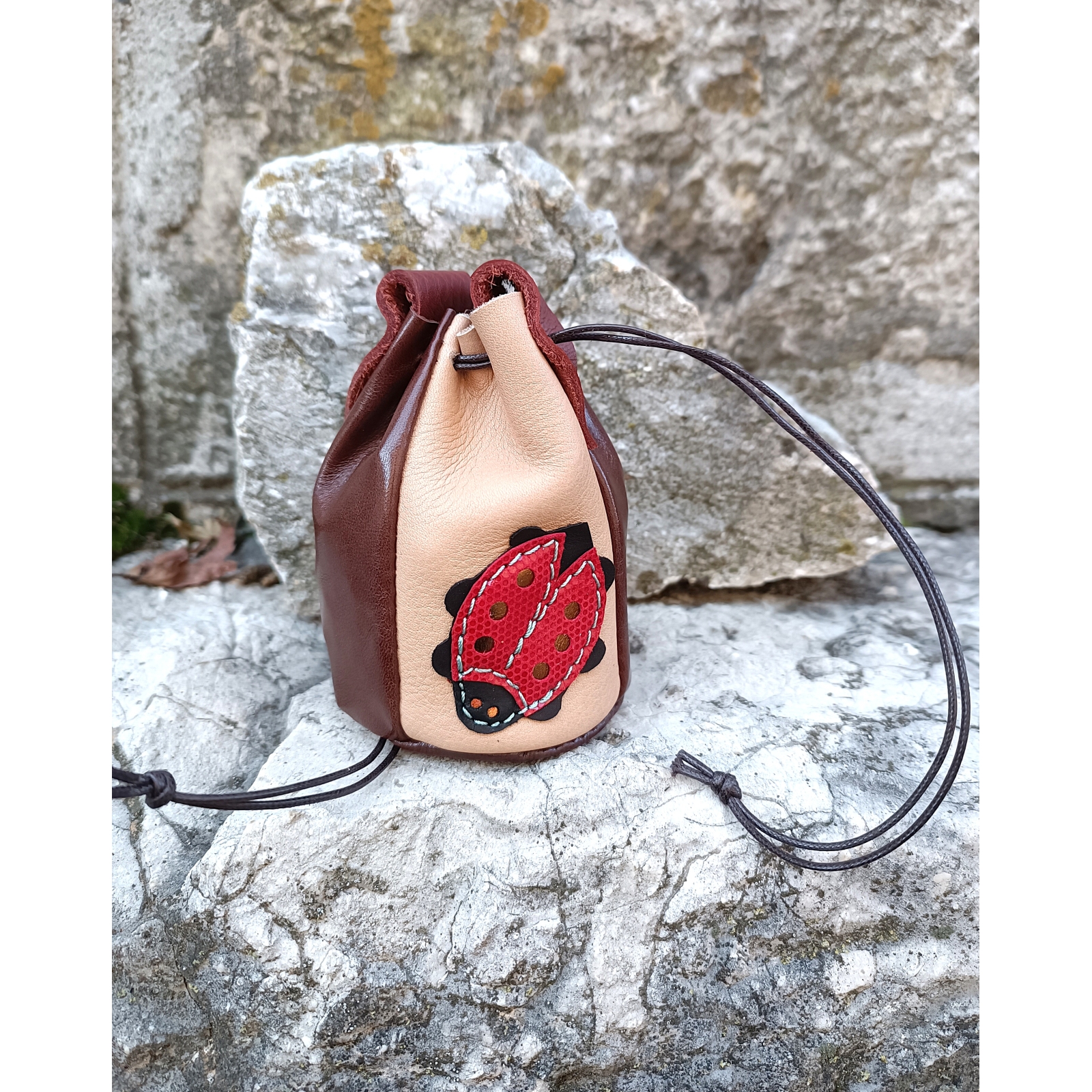 Bourse avec coccinelle en cuir idée cadeau fait en France