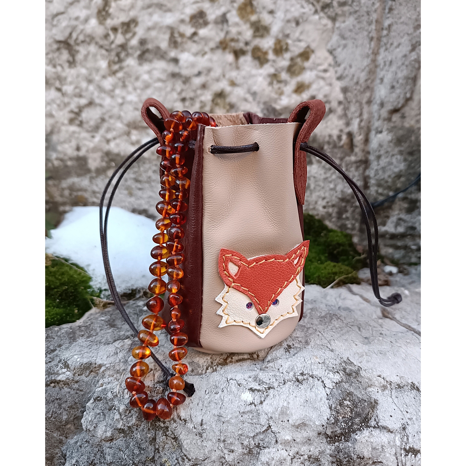 Bourse avec petit renard en cuir idée cadeau fait en France