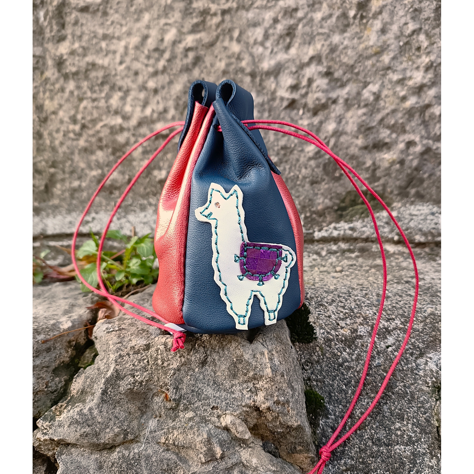 Bourse avec petit lama en cuir idée cadeau fait en France