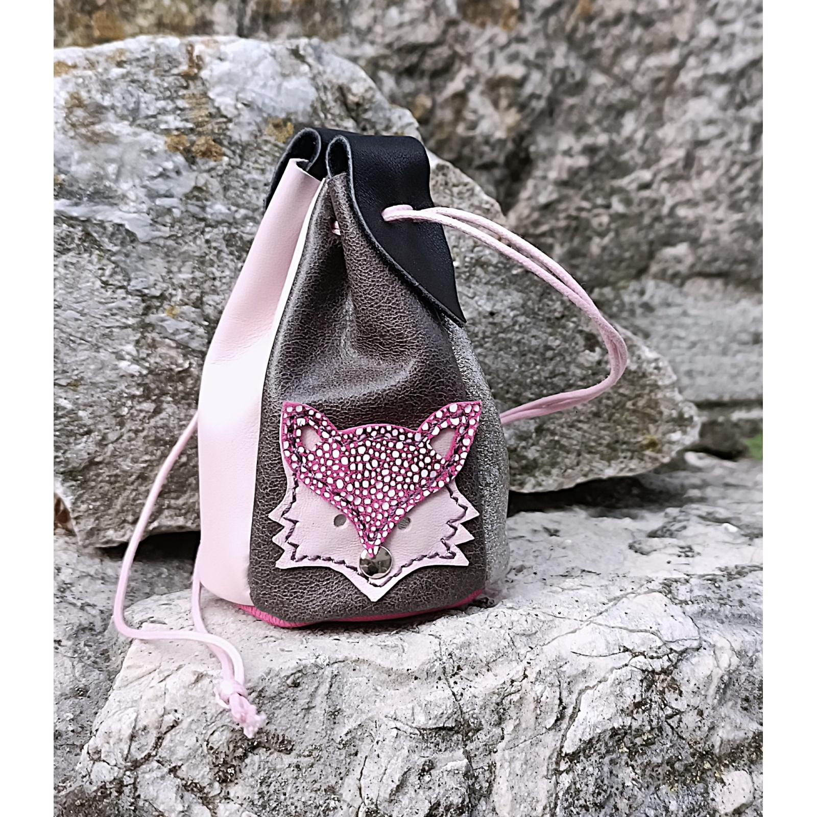 Bourse avec renard rose en cuir idée cadeau pour fan de renards