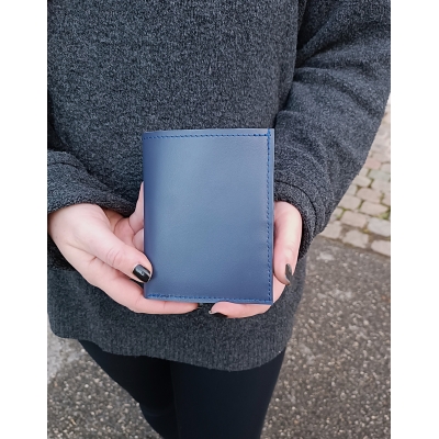 Portefeuille en cuir lisse bleu idée cadeau fabriqué en France