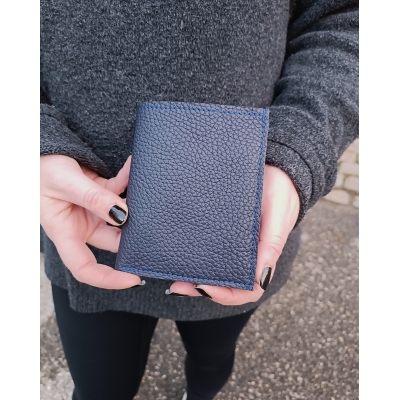 Portefeuille artisanal en cuir grainé bleu nuit idée cadeau made in France