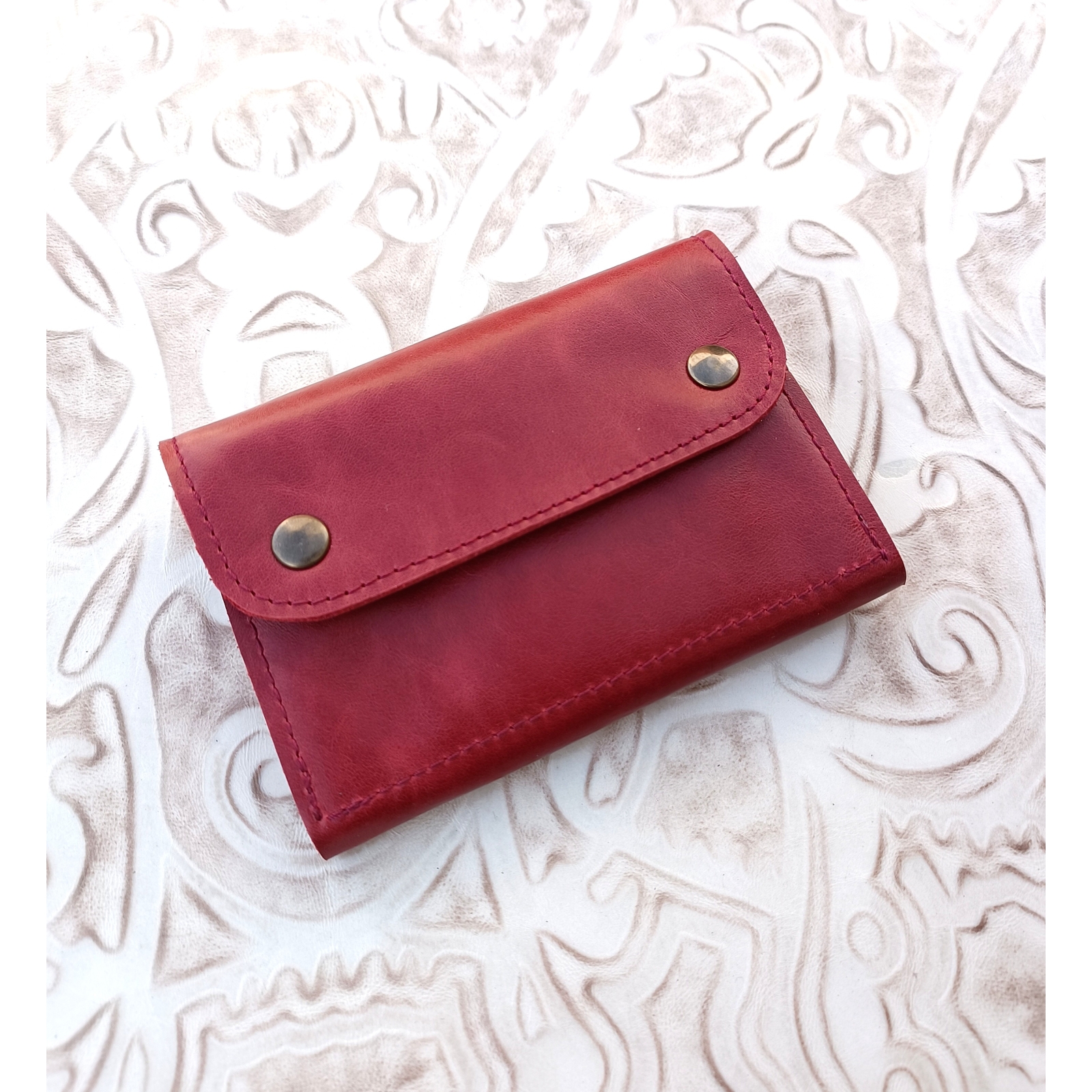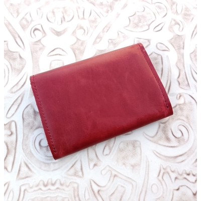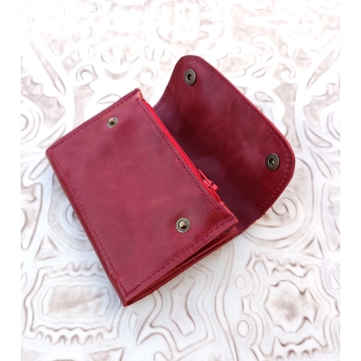 Portefeuille artisanal femme en cuir souple rouge foncé fabriqué en Haute Savoie