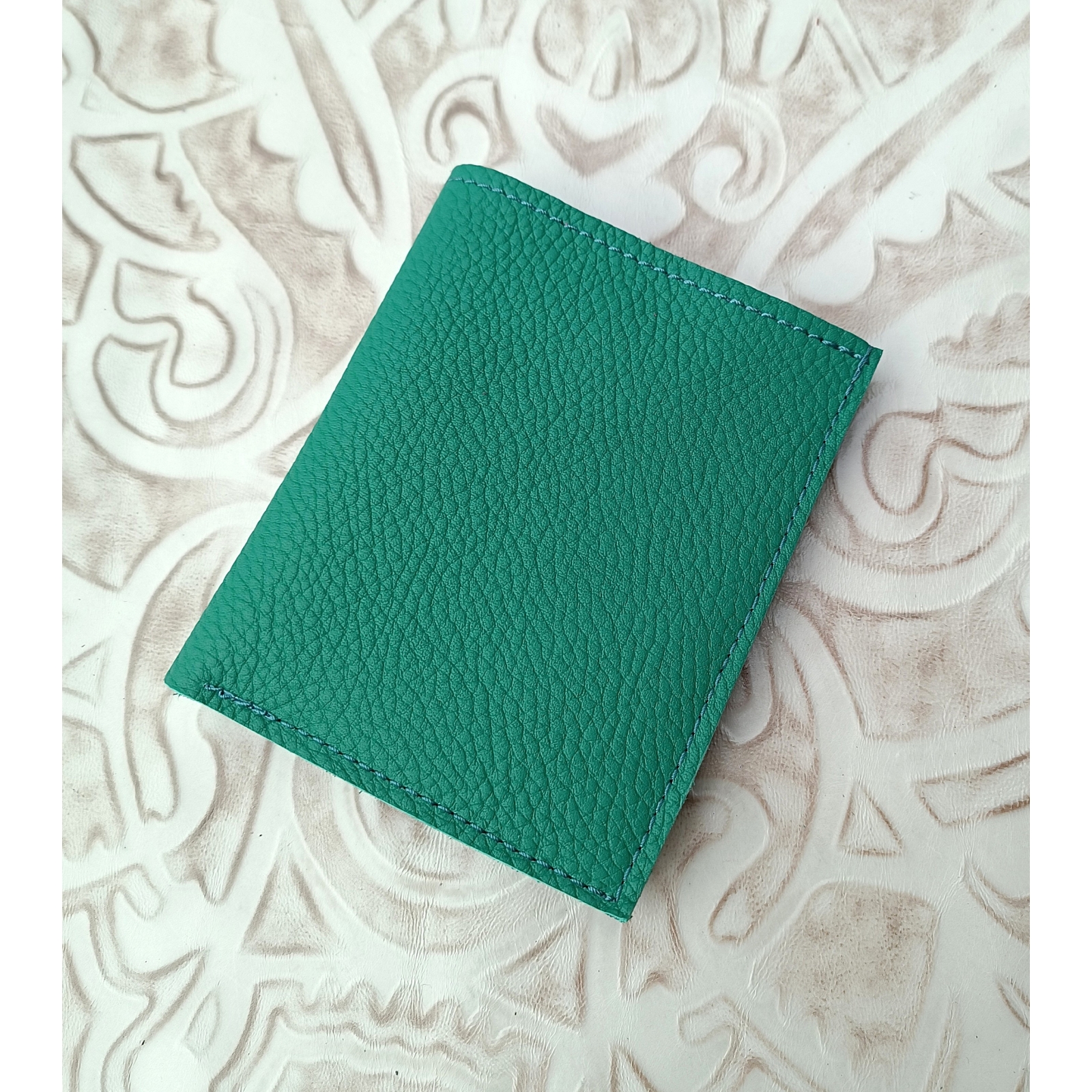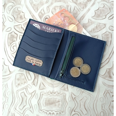 Portefeuille d'artisan en cuir vert et bleu fabriqué en France