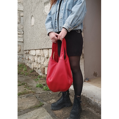 Sac grand format en cuir souple rouge vif fabriqué en France