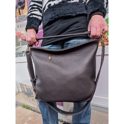 Ce sac a deux bandoulières, pour porter soit à l'épaule soit en bandoulière, soit à la main, la plus longue est réglable et