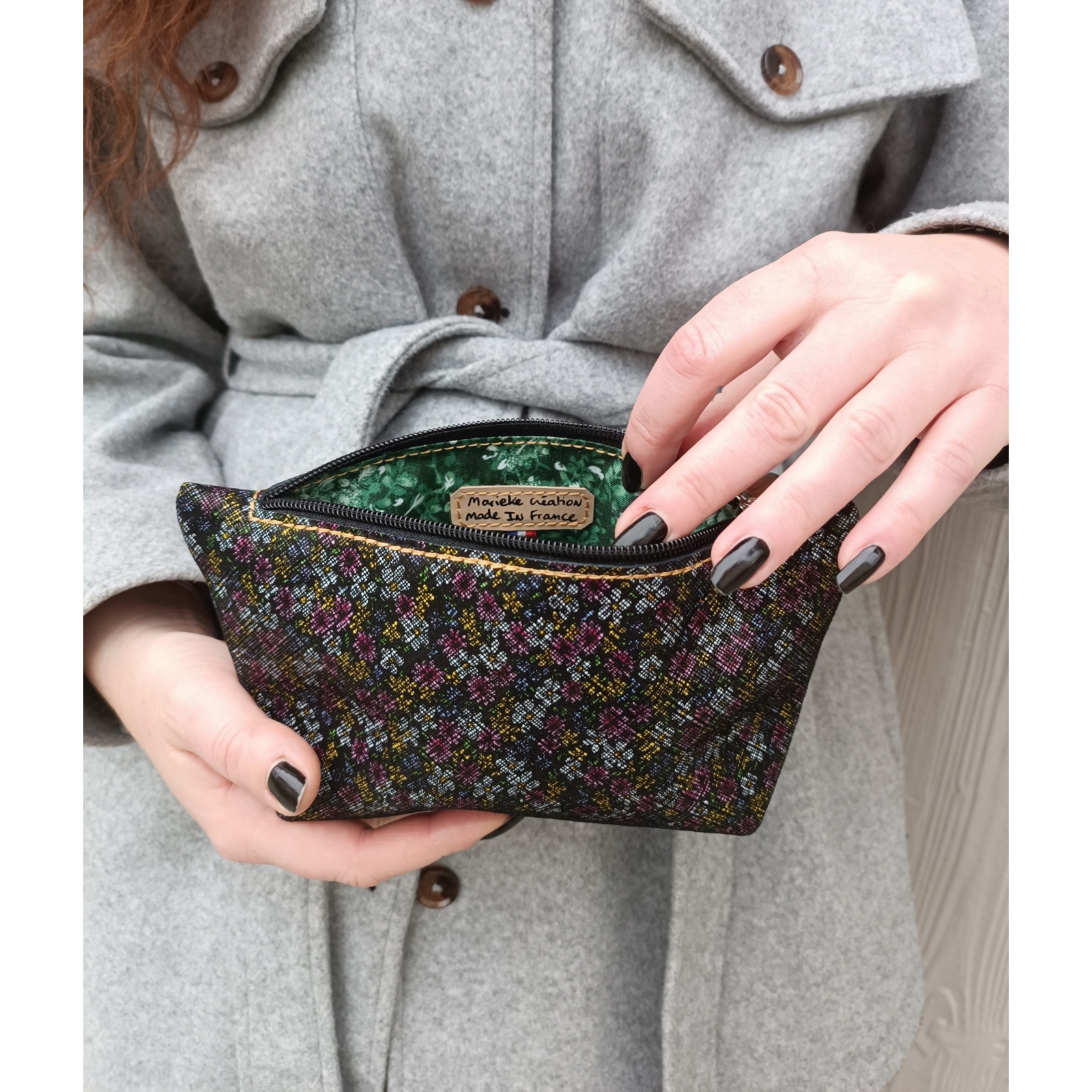Trousse zippée en cuir souple imprimé fleuri idée cadeau artisanal fabriqué en Haute Savoie