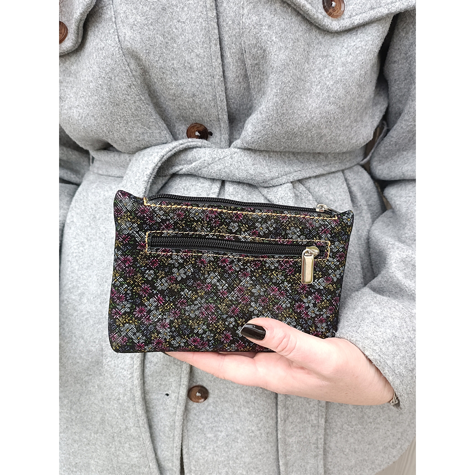 Pochette fourre tout, porte monnaie, trousse à maquillage, à couture, réalisée en cuir nubuck de chèvre imprimé fleuri